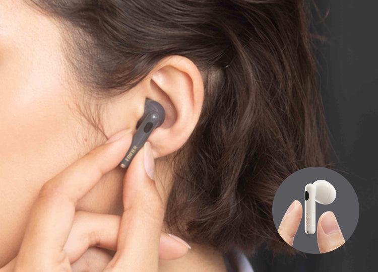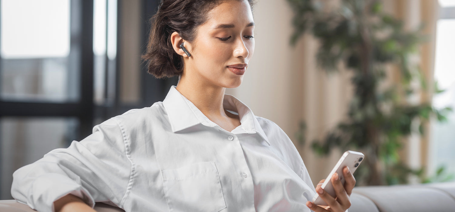 耳との着脱を自動で感知できる装着検出機能を搭載で、イヤホンを装着した状態でノイズキャンセリングをオンにして音楽を再生します。片側イヤホンを外すと、自動でノイズキャンセリング機能と音楽が一時停止します。もっと便利に、快適に音楽を聴いてみましょう!