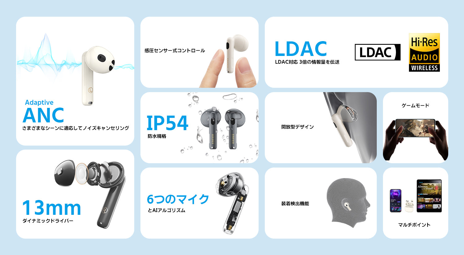 ● 【快適な装着体験】快適なストレスフリーの装着感とアクティブノイズキャンセリング技術の組み合わせにより、自分だけの音楽の世界に
