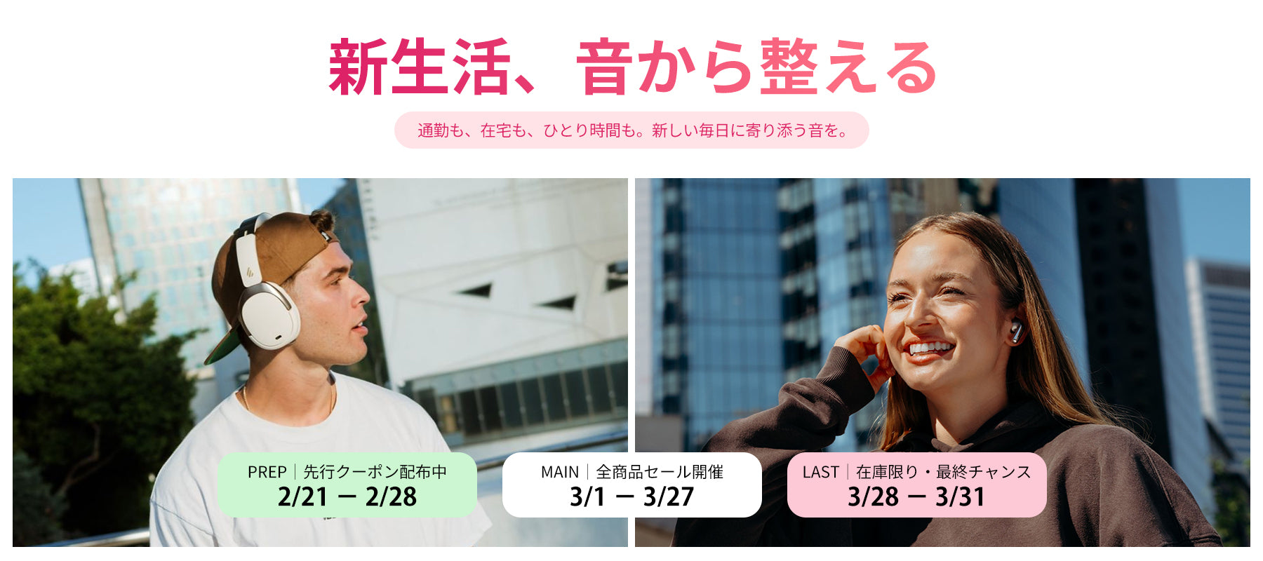 新生活セールに先駆けて、話題のワイヤレスイヤホン・Bluetoothスピーカーを特別価格で先行販売。