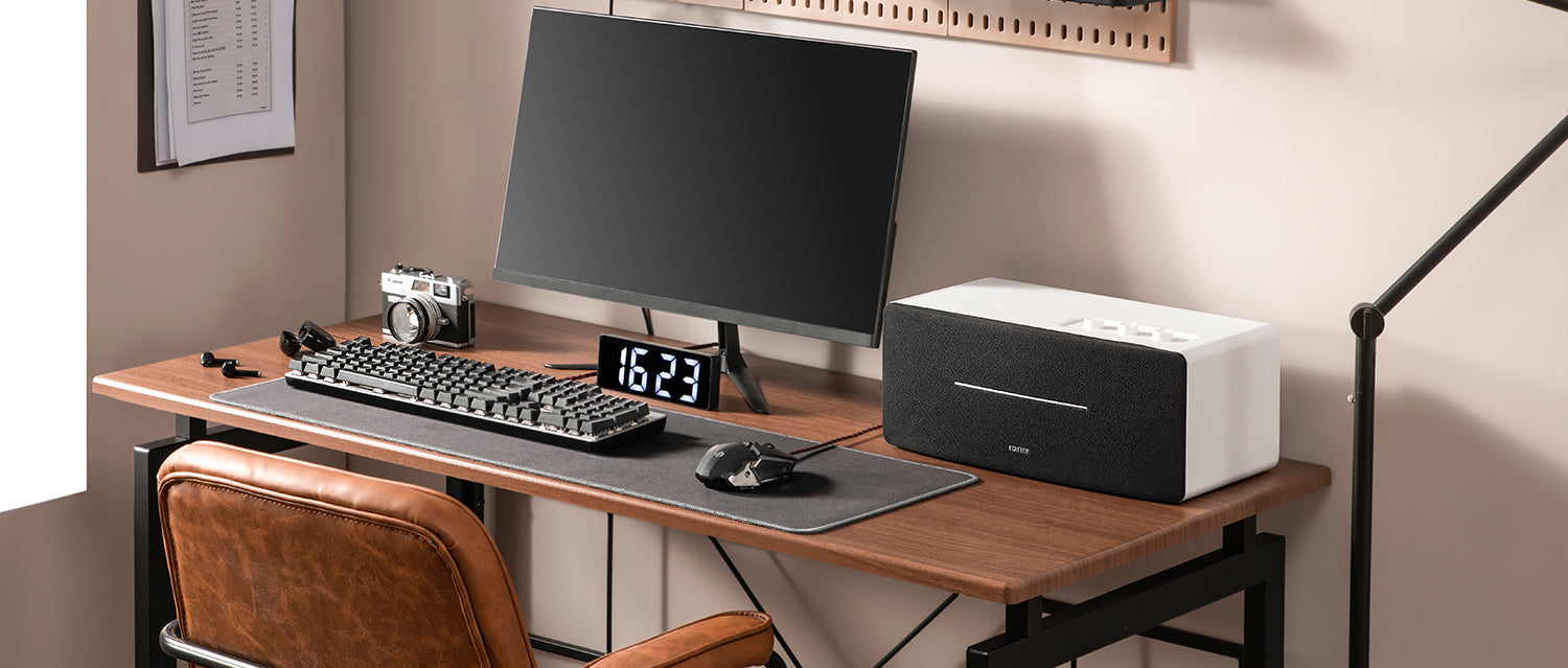 ● 歪みのない合計70W(RMS)の大出力。最適な低音レスポンスを可能にする2x10.2cm(4インチ)のウーファーと、自然に微調整されたサウンドを生み出す2x19mmのシルクドームツイーターがスタジオ品質のサウンドを再現
