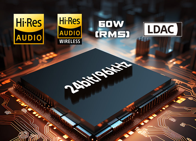 ハイレゾ対応で24bit/96kHzの解像度の信号をサポート。LDACは従来技術比約3倍のデータ量を送信可能、ハイレゾ音源を低い周波数・低いビット数へダウンコンバートすることなく伝送できます。