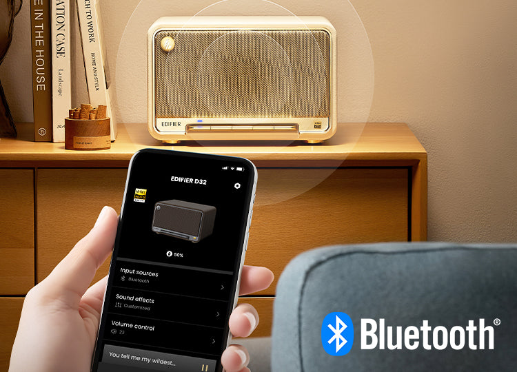 Bluetooth V5.3対応オーディオレシーバーを搭載したD32は、革新的なLDACコーデックをサポートしています。これにより、最大転送ビットレートが990kbpsに達し、Androidスマートデバイス(Android 8.0以降)から最大24bit/96kHzのハイレゾオーディオをストリーミングできます。さらに、スピーカーは2つのBluetoothデバイスの同時接続をサポートしており、オーディオソースデバイスを簡単に切り替えることができます。