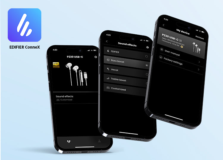 アプリで4種類のプリセットEQとカスタマイズ可能なEQを自由に設定可能。自分好みのサウンドを作り、あなただけの音体験を楽しめます。