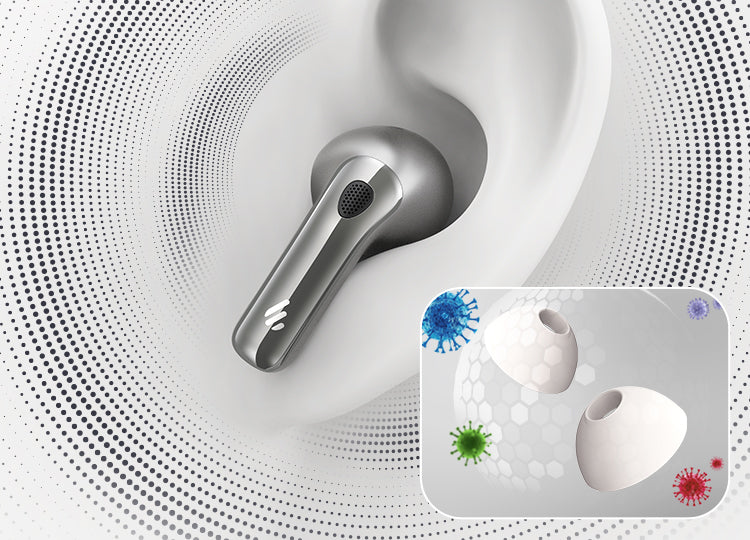 新設計の快適フィットデザイン:人間工学に基づいた設計で、長時間装着しても疲れにくいです。抗菌イヤーチップで衛生的にお使いいただけます。