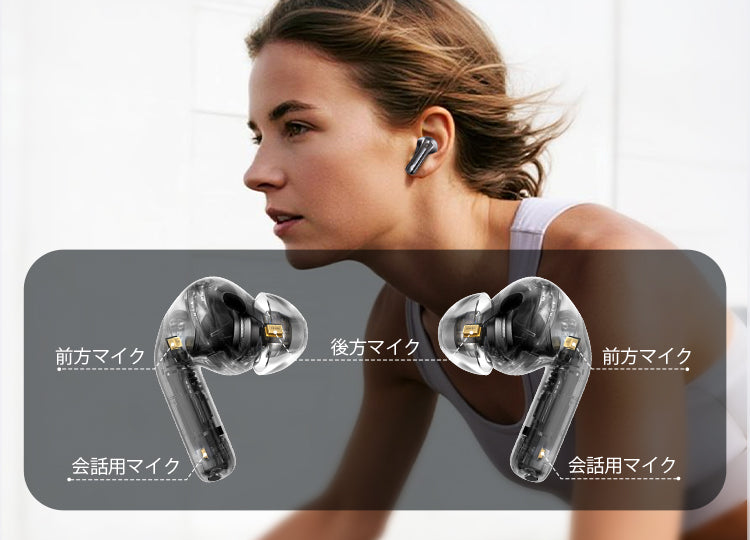 ハイブリッドANC+デュアルマイクで周囲の騒音を最大-48dB低減できます。アンビエントモードで、会話や交通音もイヤホンを外さず確認可能です。