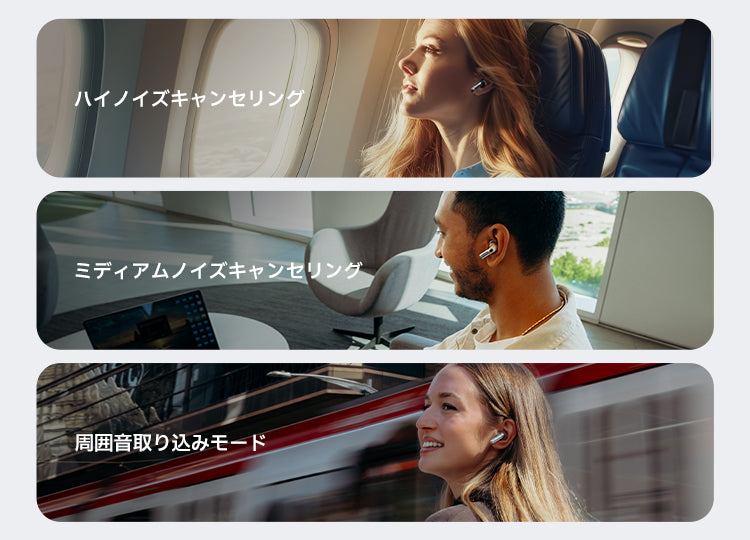 ハイブリッドANCで最大-48dBノイズ低減:先進のハイブリッドANC技術により、最大-48dBの騒音をカットします。外音取り込みや風雑音抑制モードにも対応しております。