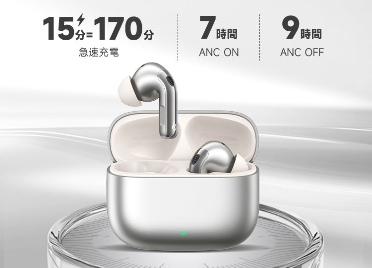 イヤホン単体で最大9時間、充電ケース使用で最大36時間の再生が可能です。急いでいる時は、わずか15分の急速充電で最大170分の再生が可能です。