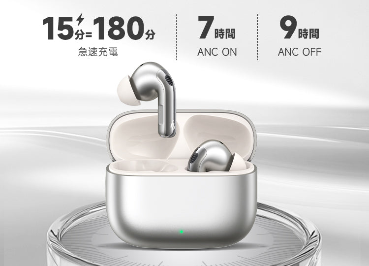 イヤホン単体で最大9時間、充電ケース使用で最大36時間の再生が可能です。急いでいる時は、わずか15分の急速充電で最大180分の再生が可能です。