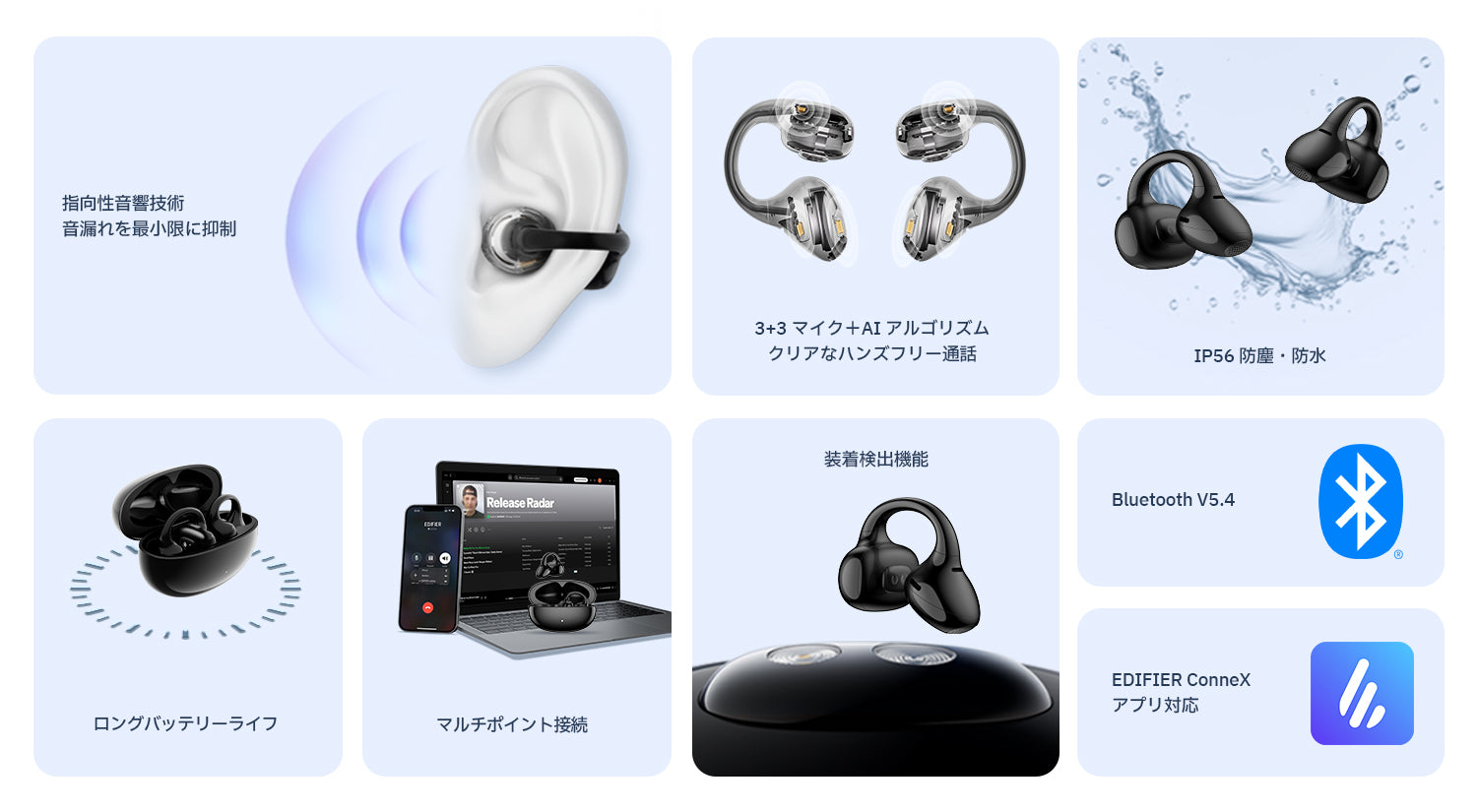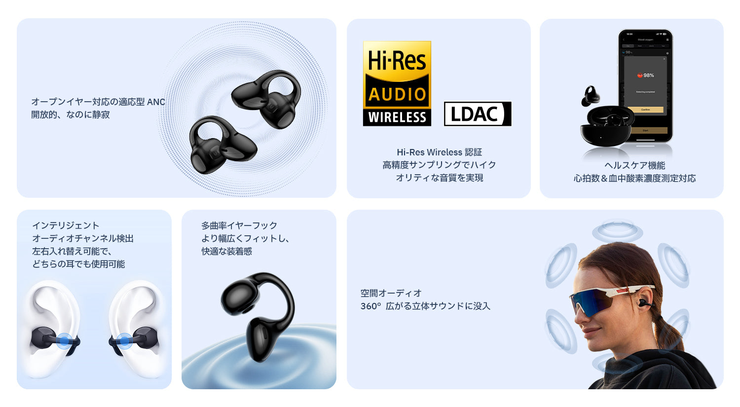 先進技術で周囲の音を自動調整し、快適でクリアな音をお届けします。オープンイヤーデザインでさらに自由な装着感を実現します。