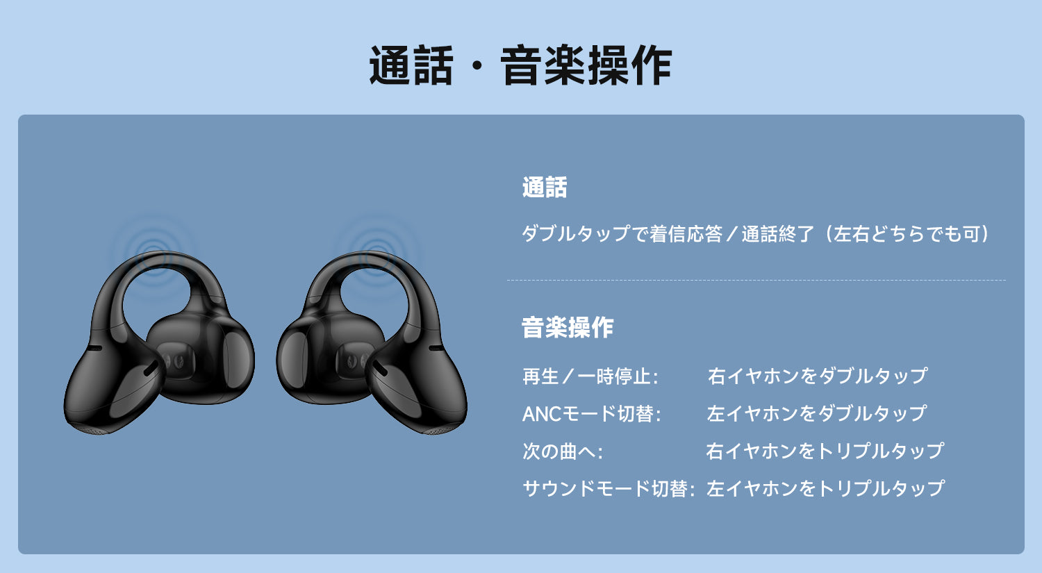 軽量設計と快適なフィット感:片耳7gの軽量設計で長時間装着も快適。装着センサーで自動再生/停止機能付きます。