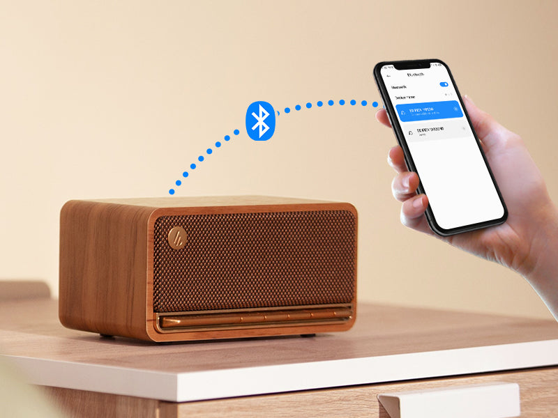 ● ビンテージラジオからインスピレーションを得た外観のデザイン。ピアノ風のコントロールボタン、全木製のシェル、レトロで優雅な外観。音楽を再生するだけでなく、装飾品として家庭やアウトドアシーンでのアクセントとなり、友達にプレゼントするのにもぴったり
