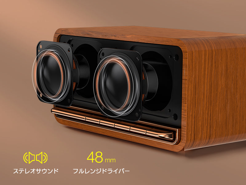 クラシックでビンテージさのあるレトロ調の外観に、 最先端のDSPデジタルオーディオテクノロジーをはじめ、最新のワイヤレスBluetoothテクノロジーなどを搭載しており、さまざまな利用法でユーザーフレンドリーな体験を実現しています。
