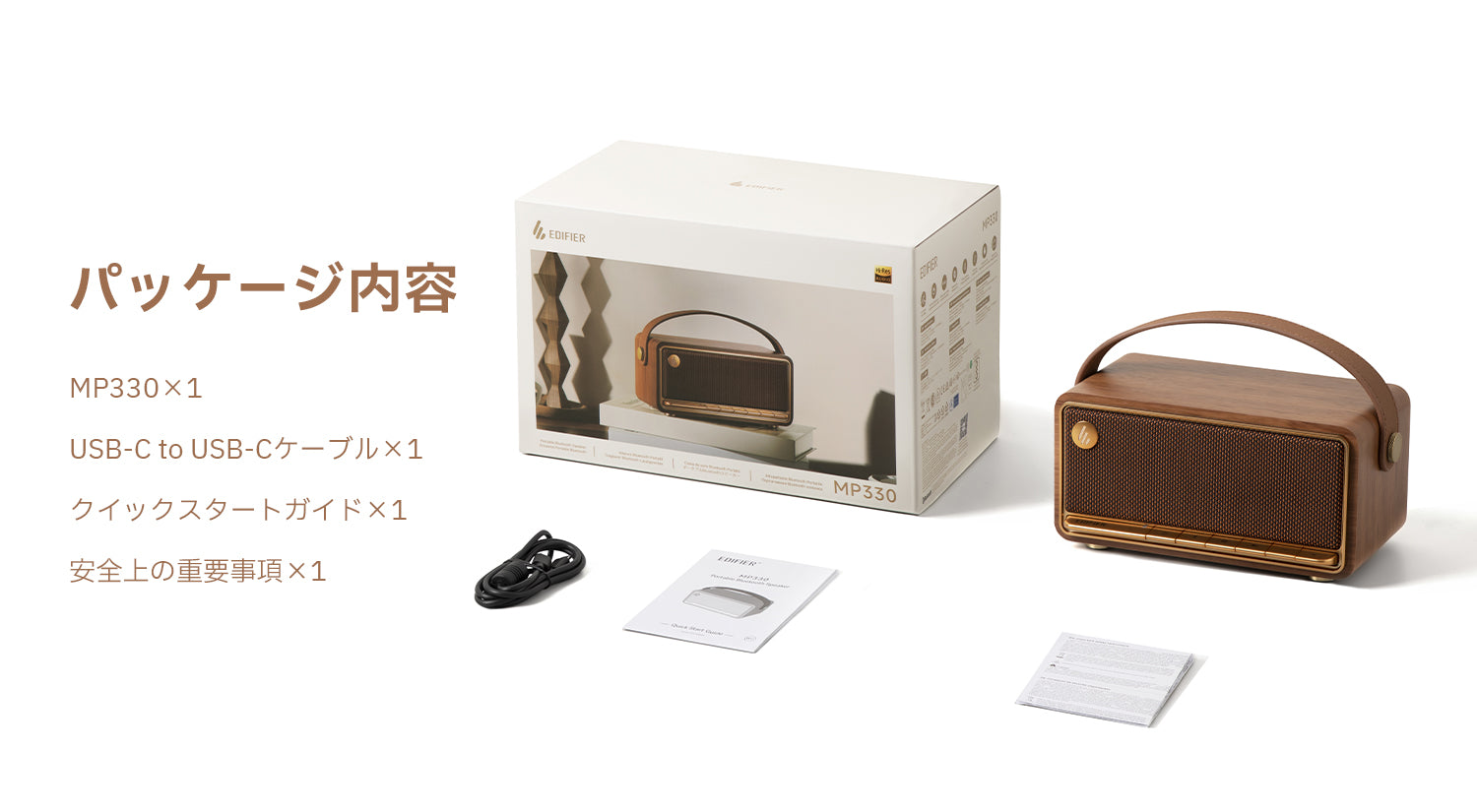 MP330は二つの0.75インチツイーターと一つのミッドベースドライバーとパッシブラジエーターを搭載し、デュアルD級アンプによって駆動され、卓越したサウンドを実現します。40W RMSのパワフルな出力により、臨場感あふれる360°オーディオ体験を提供します。