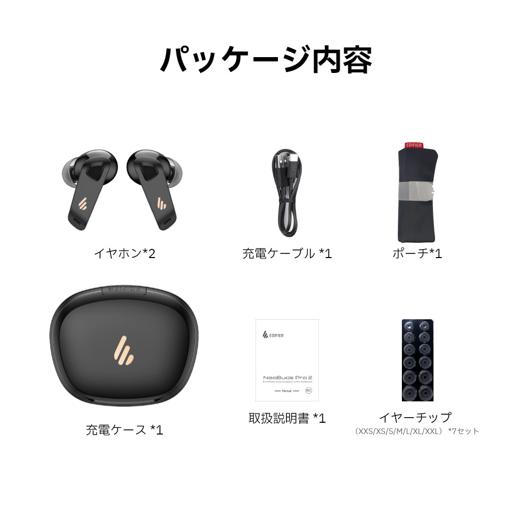 - イヤーチップ(XXS/XS/S/M/L/XL/XXL) *7セット