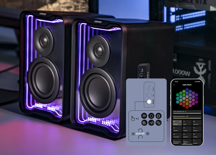 独自開発の「TempoAbyssテクノロジー」を搭載。12種類のプリセット光効果に加え、EDIFIER ConneXアプリ(モバイル)やTempoHub(PC)で自由にカスタマイズ可能です。