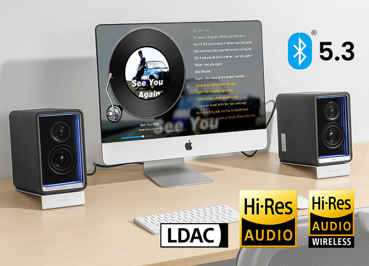 Edifier QR65は、USB-AやRCA入力端子でハイレゾ音源を楽しめるスピーカーです。さらに、LDAC技術により、Bluetoothでも24bit/96kHzの高音質音楽をワイヤレスで再生可能。まるでスタジオのような臨場感をお届けします。