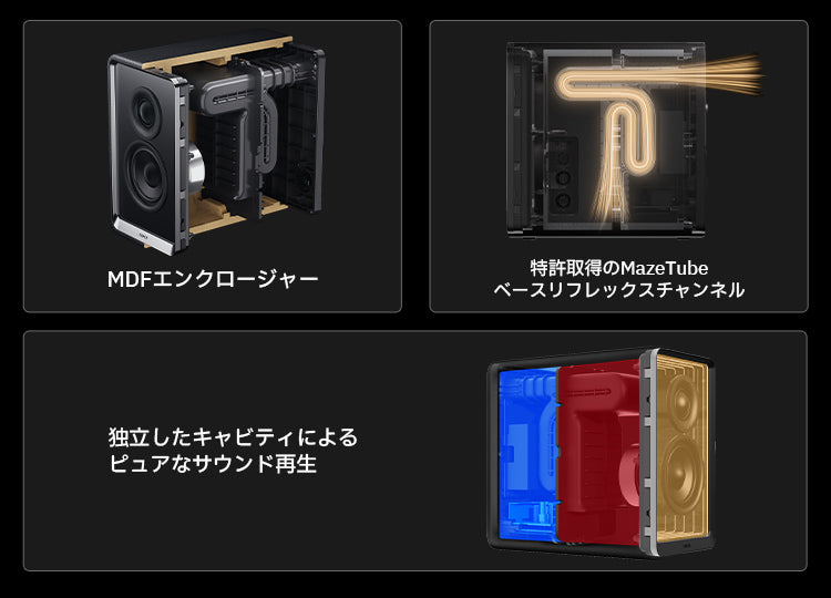 高剛性MDFキャビネットと先進バスリフレックス技術