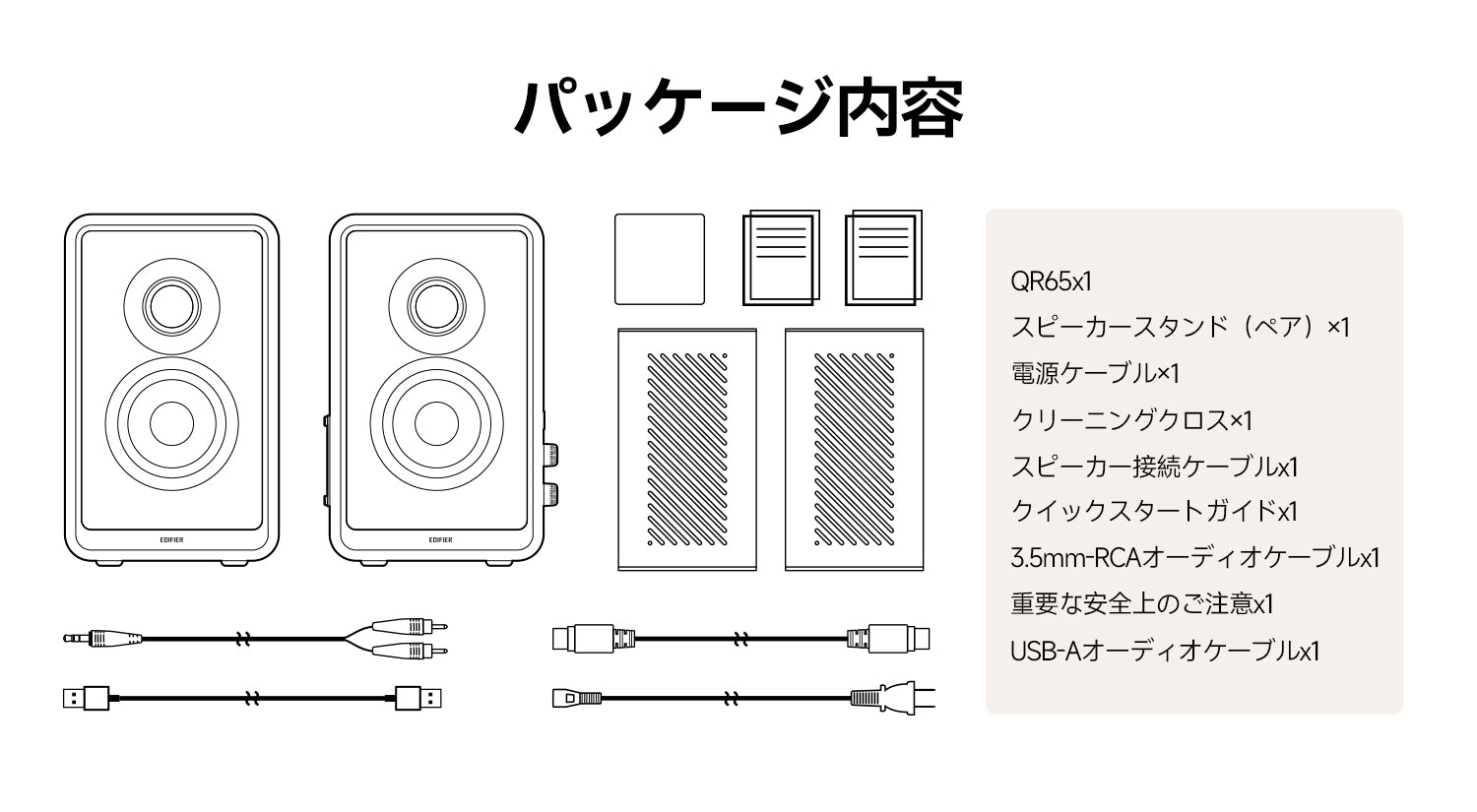 Edifier QR65は、USB-AやRCA入力端子でハイレゾ音源を楽しめるスピーカーです。さらに、LDAC技術により、Bluetoothでも24bit/96kHzの高音質音楽をワイヤレスで再生可能。まるでスタジオのような臨場感をお届けします。