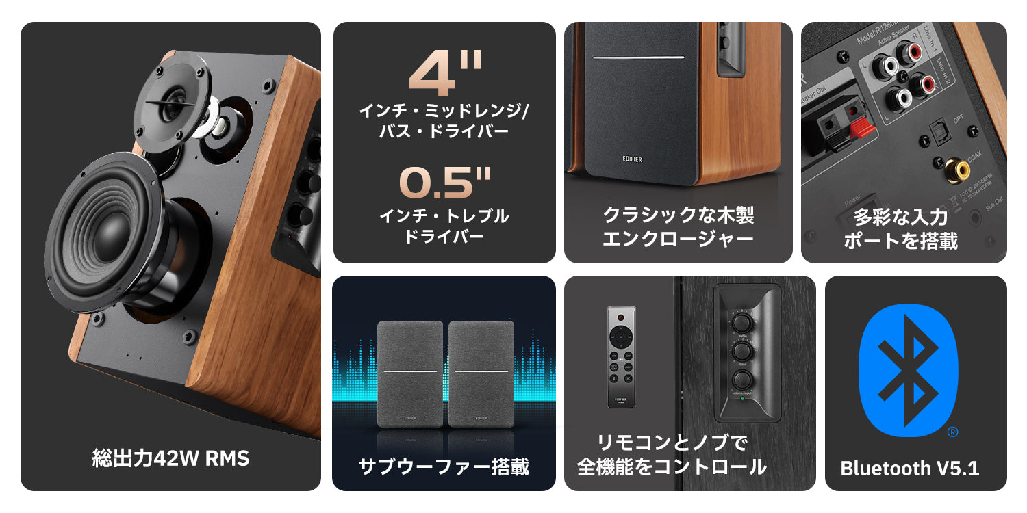 4つのドライバーユニットを駆使し、最大42W(RMS)の出力で部屋いっぱいに迫力あるサウンドを届けます。低音から高音までバランスの取れたパフォーマンスで、臨場感あふれる音楽や映画を楽しむことができます。