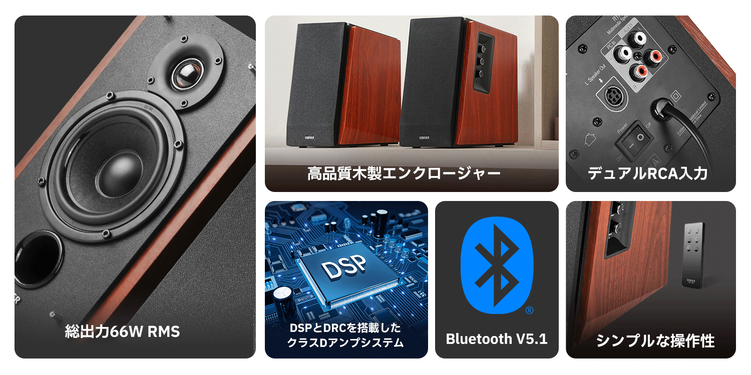 Bluetooth V5.1を搭載したR1700BTは、強力な解像度、安定した伝送、低消費電力といった特長を活かし、シームレスなオーディオ・ストリーミングを実現します。ワイヤレスで手軽に接続することで、ケーブルの制約から解放され、クリアで高品質なサウンドを存分に楽しむことができます。様々な用途に対応し、音楽や映画、ゲームなどをより魅力的にお楽しみいただけます。