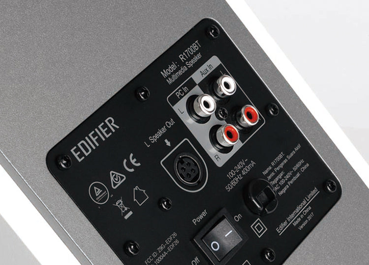 R1700BTは、洗練されたMDF木製エンクロージャーによる、外観と音質の両面で優れたデザインを採用しています。このエンクロージャーは、歪みを低減し、音響共振を最小限に抑えるように特別に設計されています。また、各スピーカーベースは、ダイナミックな精度と音楽の届ける感動を最大限に引き出すために、10度の傾斜で角度がつけられています。このユニークな設計により、ドライバーは直接耳に音を届け、一層の没入感を実現します。見た目とパフォーマンス、どちらも兼ね備えたスピーカーで、音楽体験がより一層豊かになります。