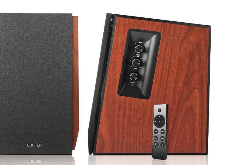 R1700BTsは、その洗練されたMDF木製エンクロージャーによる、外観と音質の両面で優れたデザインを採用しています。このエンクロージャーは、歪みを低減し、音響共振を最小限に抑えるように特別に設計されています。また、各スピーカーベースは、ダイナミックな精度と音楽の届ける感動を最大限に引き出すために、10度の傾斜で角度がつけられています。このユニークな設計により、ドライバーは直接耳に音を届け、一層の没入感を実現します。見た目とパフォーマンス、どちらも兼ね備えたスピーカーで、音楽体験がより一層豊かになります。