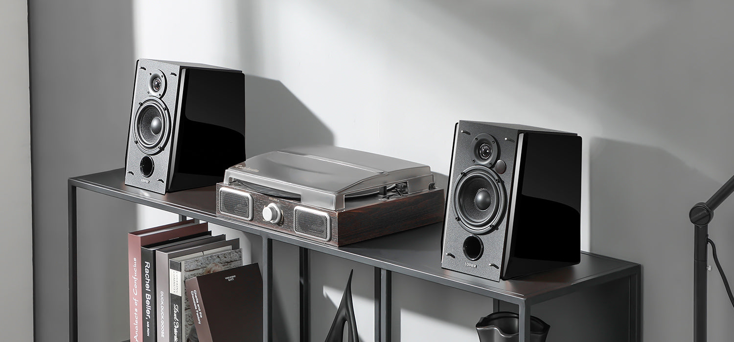 MDFの木製エンクロージャーは、優れた耐久性と共にクールな美しさを備え、また歪みを効果的に低減し、音響共鳴を最小限に抑えるように工夫されています。各スピーカーベースは、ダイナミックな精度と音の伝送を向上させるために10度傾斜しており、これによりウーファーがサウンドを耳に直接届けます。