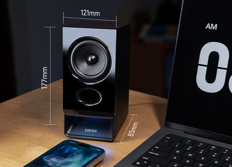 2.75インチのフルレンジドライバーとバスレフポートを搭載し、総合出力5W RMSを実現。力強い低音と、全体的にバランスの取れたサウンドをお届けします。MDF製キャビネットが共振と歪みを効果的に低減し、クリアで高品質なオーディオを提供します。