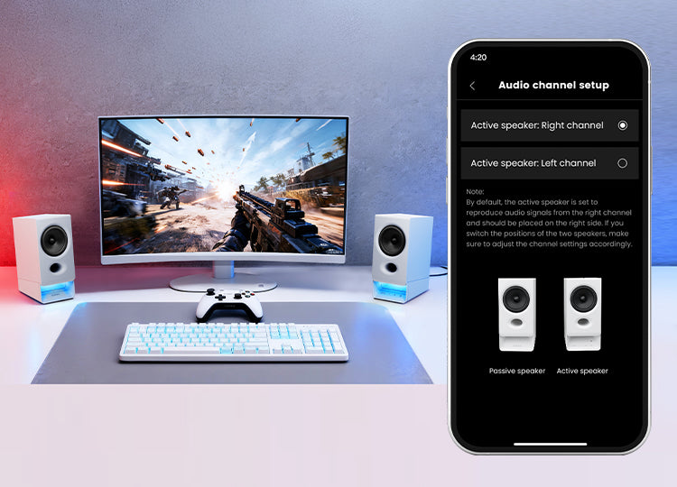 専用アプリでスピーカーのオーディオチャンネルを入れ替え可能。左右に関わらず、常に正しいステレオサウンドを再生できます。