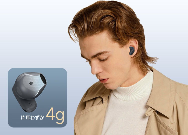 一日中快適な装着感:人間工学に基づいた耳にフィットするデザイン。軽量で快適なつけ心地が、長時間の使用でもストレスを感じさせません。