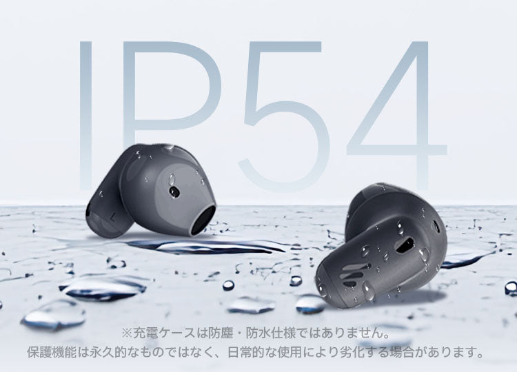 IP54防塵防水規格:IP54等級の防塵防水性能で、運動中やアウトドアでもホコリや水しぶきからイヤホンをしっかり保護します。