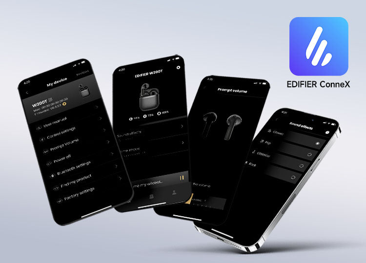EDIFIER ConneX アプリをダウンロードして、多彩な音楽スタイルを楽しみ、コントロール設定をカスタマイズ、ファームウェアの更新、イヤホンの名前変更、そして失くしたイヤホンを探すことができます!