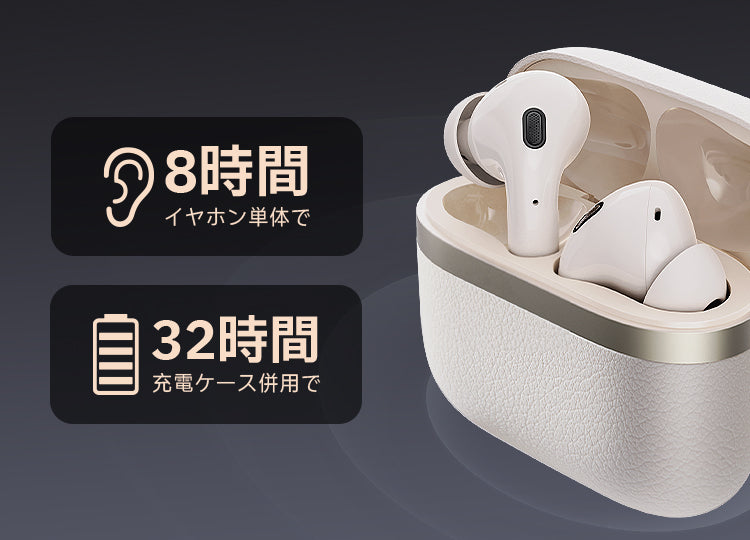 ANC OFF: 8時間(イヤホン) + 24時間(充電ケース)=32時間