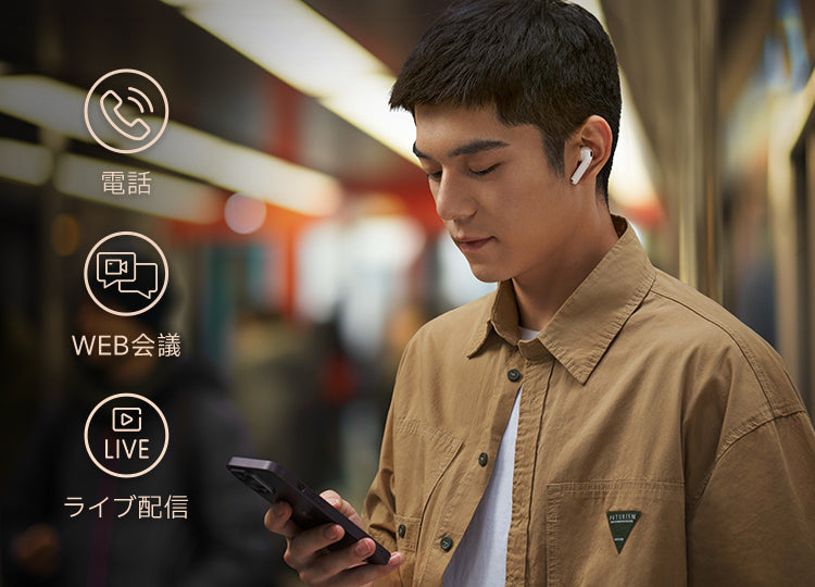 クリアな通話体験を実現するために、左右それぞれに3つのマイクを搭載し、合計6つのマイクが協調した優れた通話品質を提供します。精密なボイスピックアップと先進的なノイズフィルタリングアルゴリズムにより、周囲の騒音を最小限に抑え、通話相手にクリアで自然な音声を届けます。これにより、移動中や騒がしい場所でも、相手にストレスなく伝わる通話が可能です。