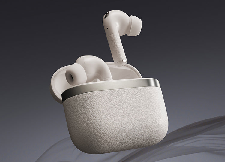 W260NCは、そのスタイリッシュで洗練されたデザインで注目を集めます。充電ケースは、一般的な樹脂製ケースとは異なり、上品なレザーテクスチャによる表面とメタルプレートによる優れたグリップ感と贅沢な質感を提供します。レザーテクスチャは手にしっくりとなじみ、優れた耐久性と高級感を同時に実現しています。またメタルプレートは製品全体を高級感を与えるデザインに仕上げるとともに耐久性を向上しています。