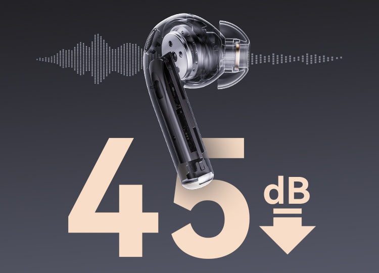 ● 最大-45dBのANCノイズキャンセリングにより、外部の騒音を効果的にカットし、より純粋に音楽に集中できる体験を提供