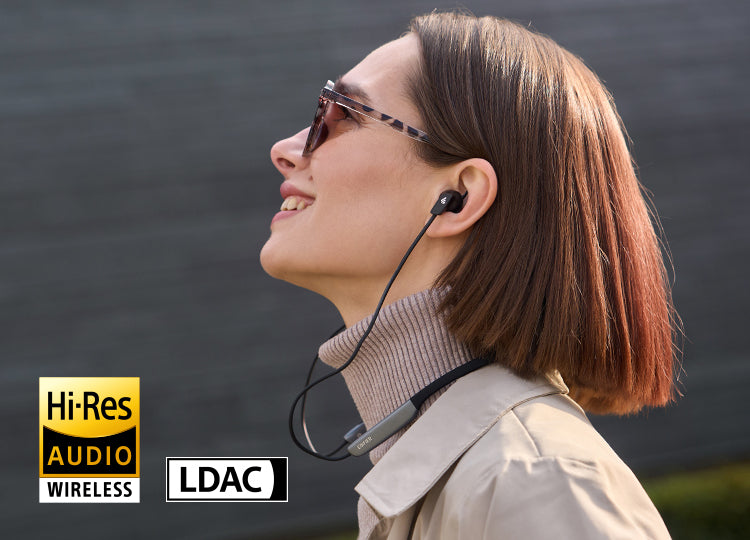 LDAC高音質コーデック対応。96kHz/24bitのスタジオクオリティサウンドを再現し、ハイレゾワイヤレス認証を取得した高解像度音質です。