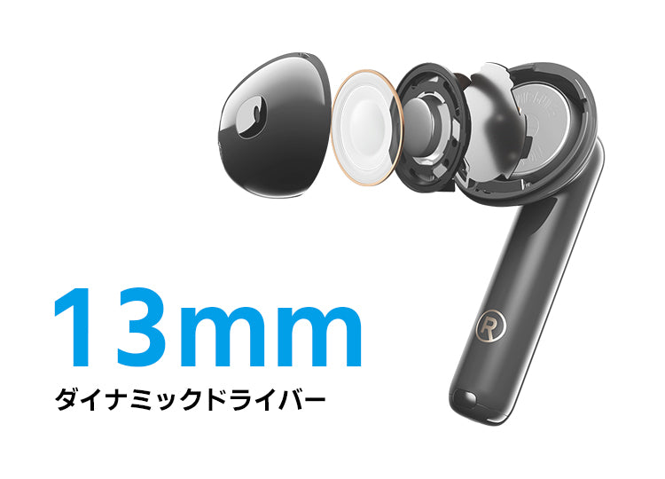 気密性の高い独立サウンドキャビティ設計を採用。大口径13mmダイナミックドライバーを搭載し、40KHzの大幅な周波数幅、990Kbpsの高品位解析を実現しました。細部が豊かで、強力にHiFiサウンドを再現します。