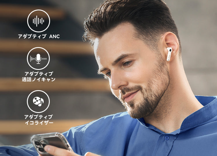 ● 【ANCノイズキャンセリング】アダプティブANC(アクティブノイズキャンセリング)ヘッドホンで、さまざまな環境で最適なノイズキャンセリング効果を自動的に提供し、AIアルゴリズムでサウンドをカスタマイズし、より最適なリスニング環境を実現