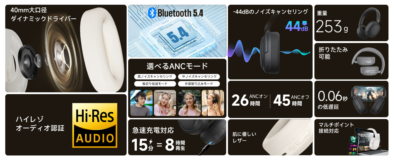 - 【ハイレゾ音源のクリアで繊細なサウンドを実現】40 mmダイナミックドライバは広い音場と強力な低音を提供し、チタンコート振動板はクリアで透明感のある中高域を実現します。