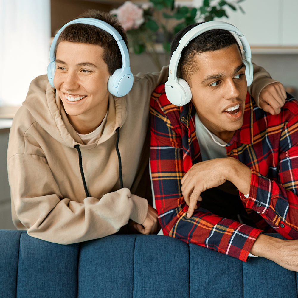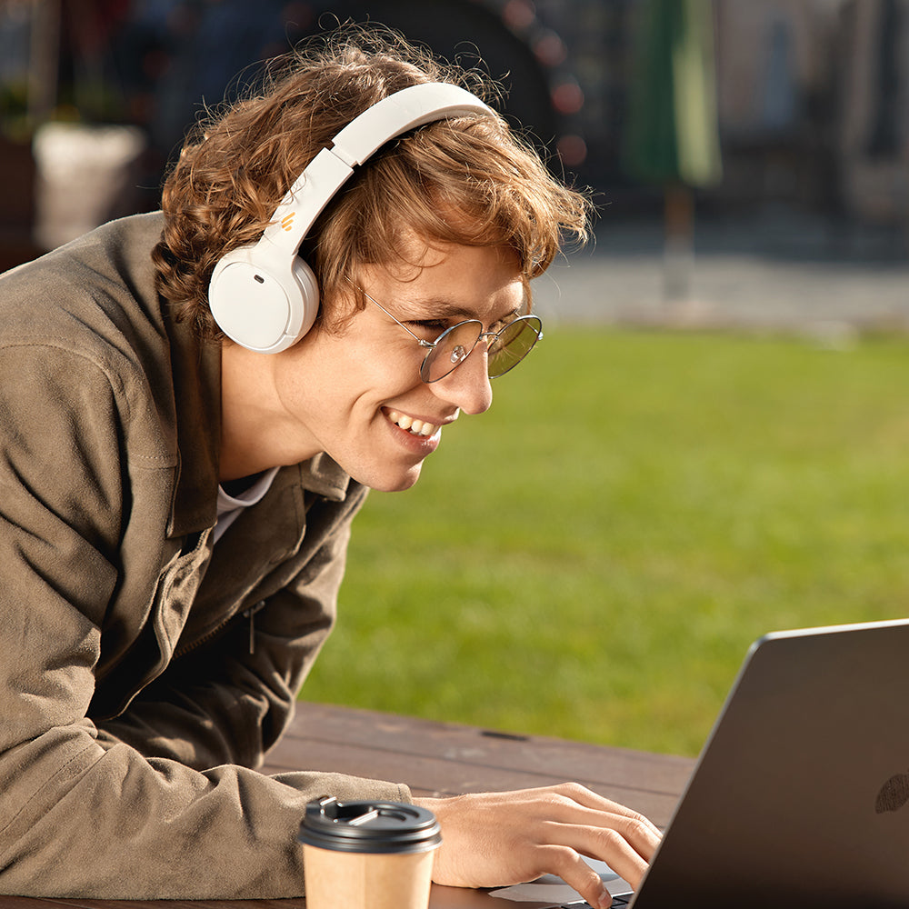 WH500は、最新のBluetooth 5.2によるデバイス間のマルチポイント接続に対応。スムーズな切り替え処理で、ノートパソコンで動画視聴をしながら電話着信時にスマートフォンへ数秒で切り替えることも可能です。