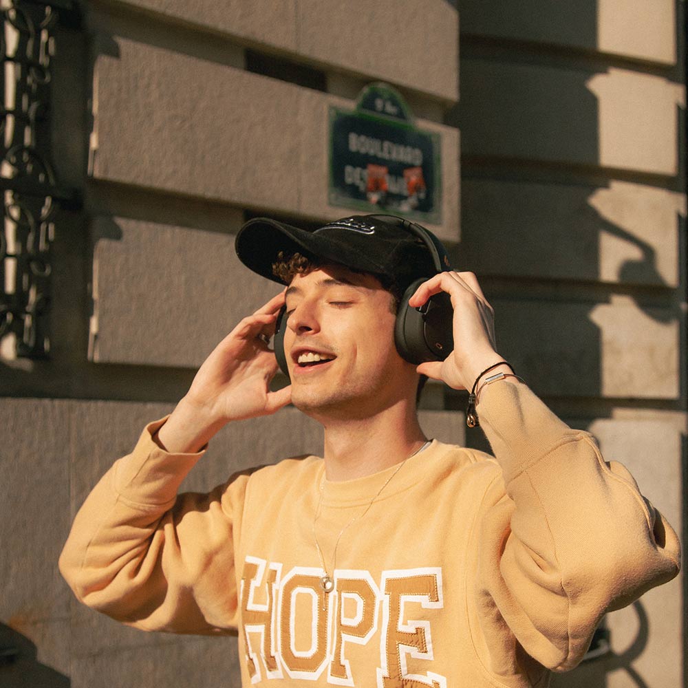 WH950NBヘッドフォンは、LDACコーデックをサポートし、Hi-Res AudioおよびHi-Res Audio Wirelessの両方の認証を取得しています。世界レベルの音響チームによる精巧なチューニングにより、本格的なスタジオレベルのサウンドを実現します。WH950NBでは、40kHzの周波数応答で高音質の音響を再生できます。Hi-Res Audioが、さまざまなディテールとクリアなサウンドをもたらし、最高の聴き心地を実現します。