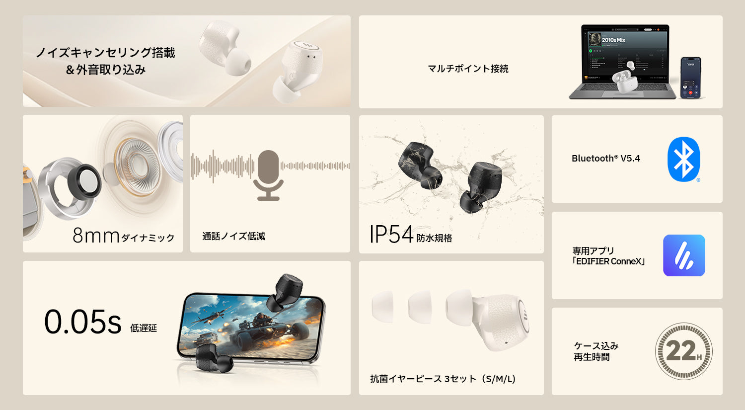 簡単操作 & アプリ対応:EDIFIER ConneXアプリに対応し、操作設定やEQプリセットの選択などが可能です。